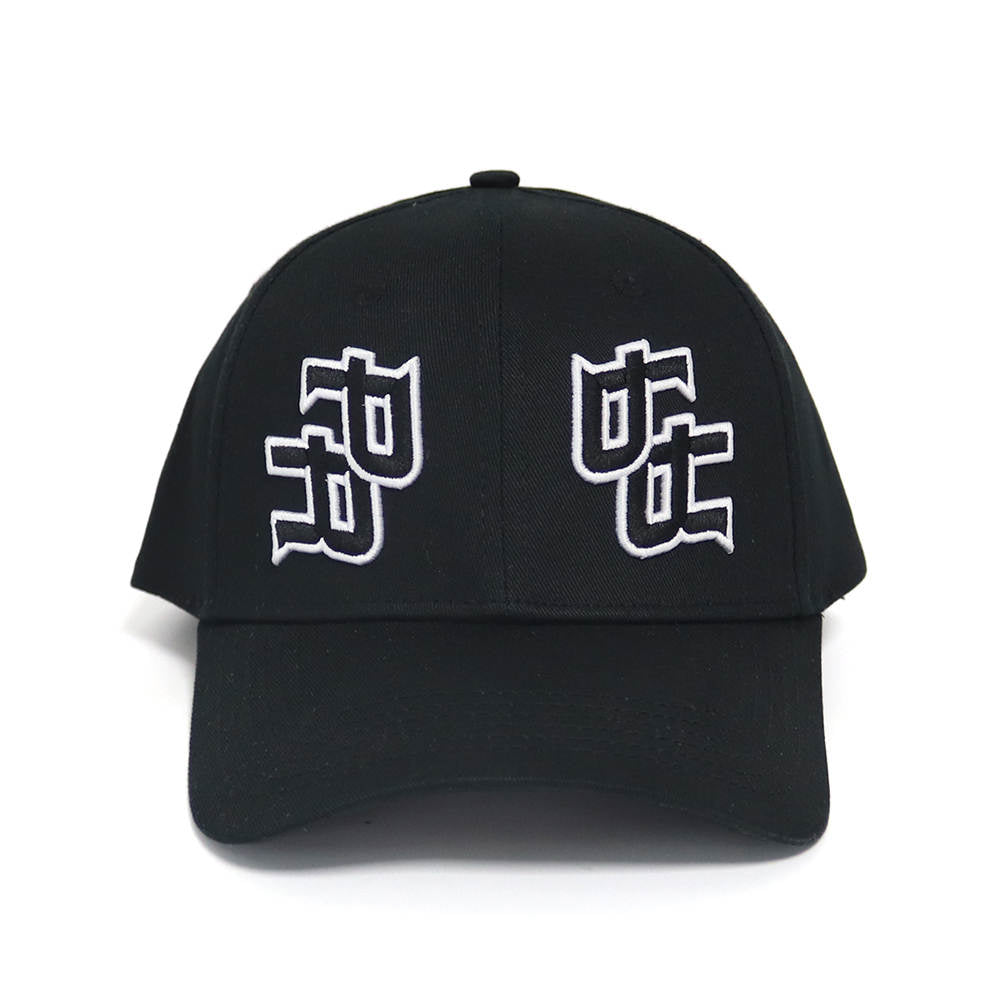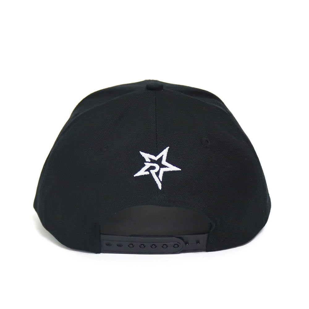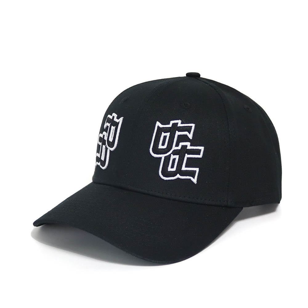 Black Cap with white embroidered details. Double PR in 3D.